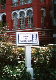 | バスコダガマ・ガーデンの表示 マカオの通りや名所の表示はこの白とブルーのタイルに統一されている。 |