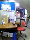 衝立の裏側 この机で仕事をしたり、ご飯を食べたりします。 遅番はお腹がすくので、お客様の目を盗んでカップ麺などを食べたりします。 お湯を注いだとたんに忙しくなったりしますが。 |